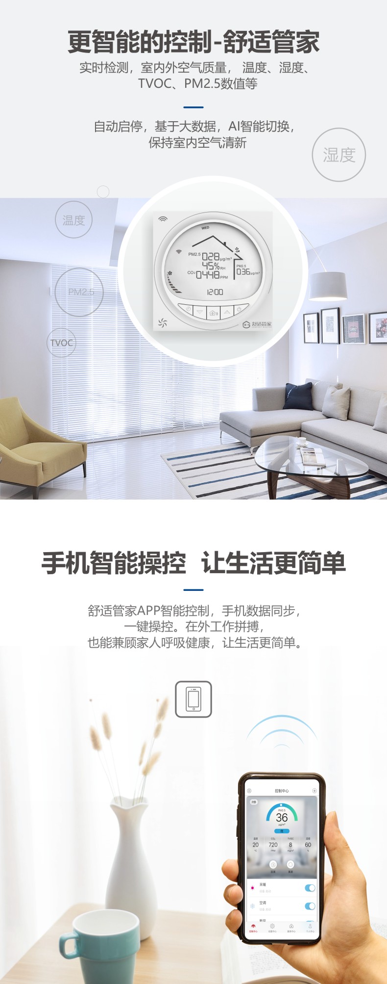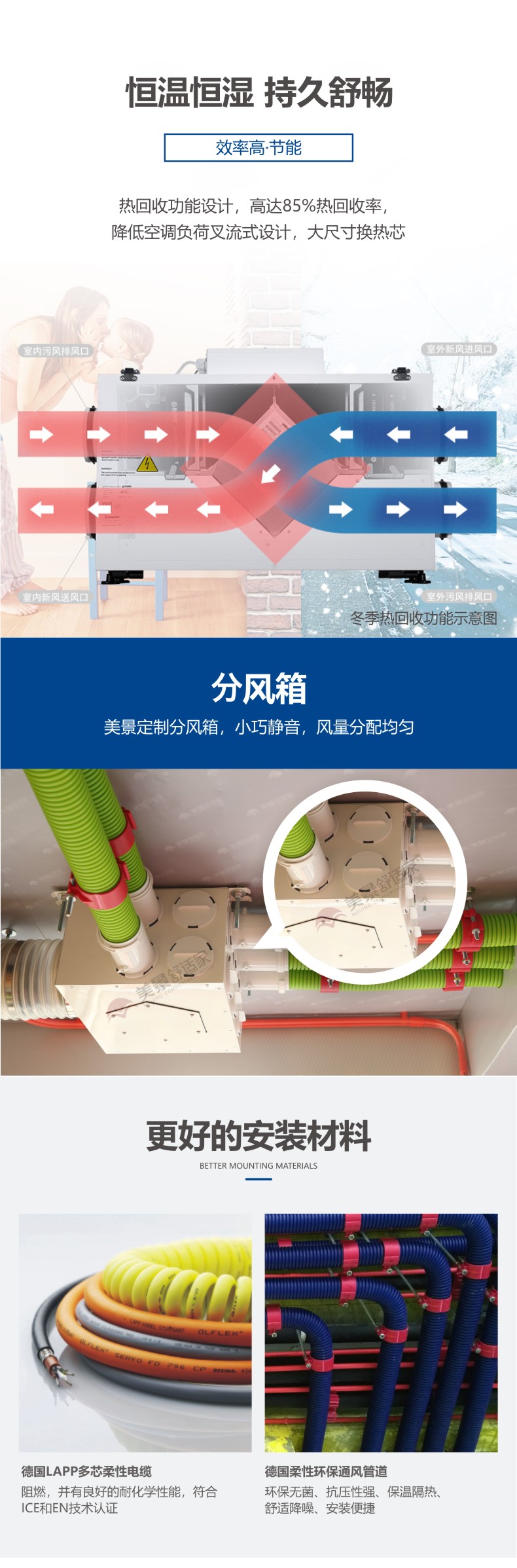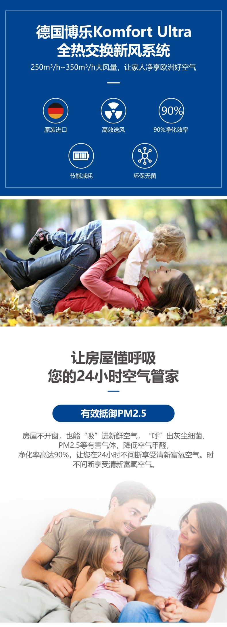 德国原装进口中央热回收新风系统,实时监控室内空气质量,智能通风换气。