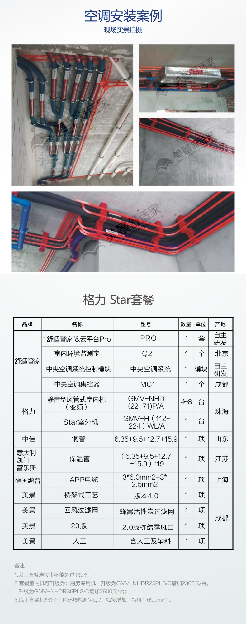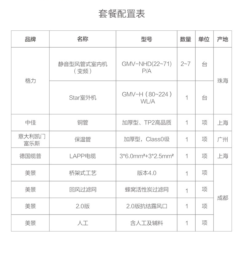 套餐配置为格力STAR系列多联机,1拖2至1拖6机型.适用于60-160㎡ 1室1厅,4室2厅户型. 此价格为大致估价,准确价格以实际方案为准